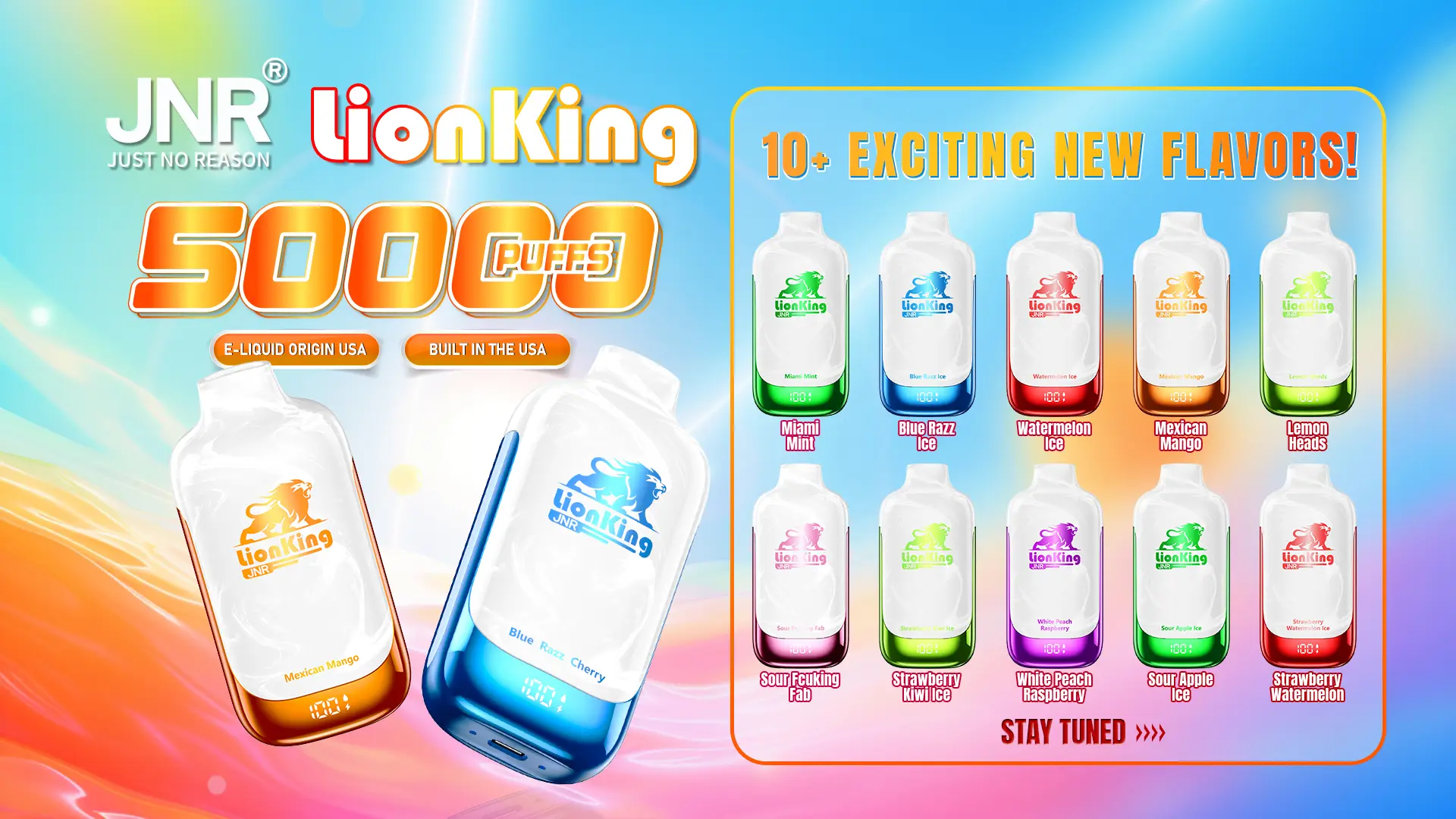 Its compact and portable design makes the Lion King easy to carry while still housing a high-capacity rechargeable battery, ideal for both daily use and extended sessions. With 20+ popular flavors—including fruity, icy, and mixed blends—the JNR Lion King 50000 Puff meets the preferences of both retail customers and wholesale buyers.